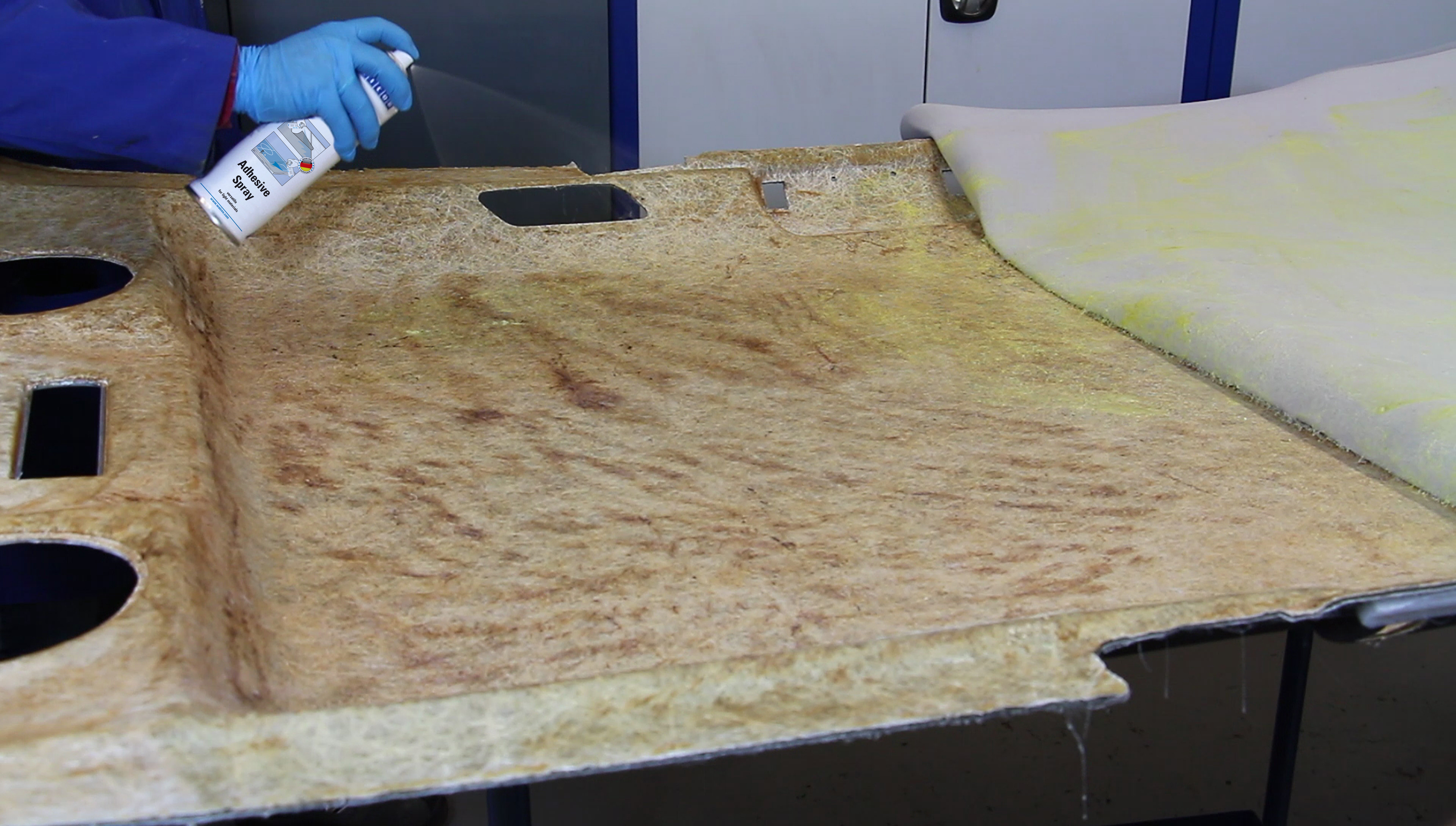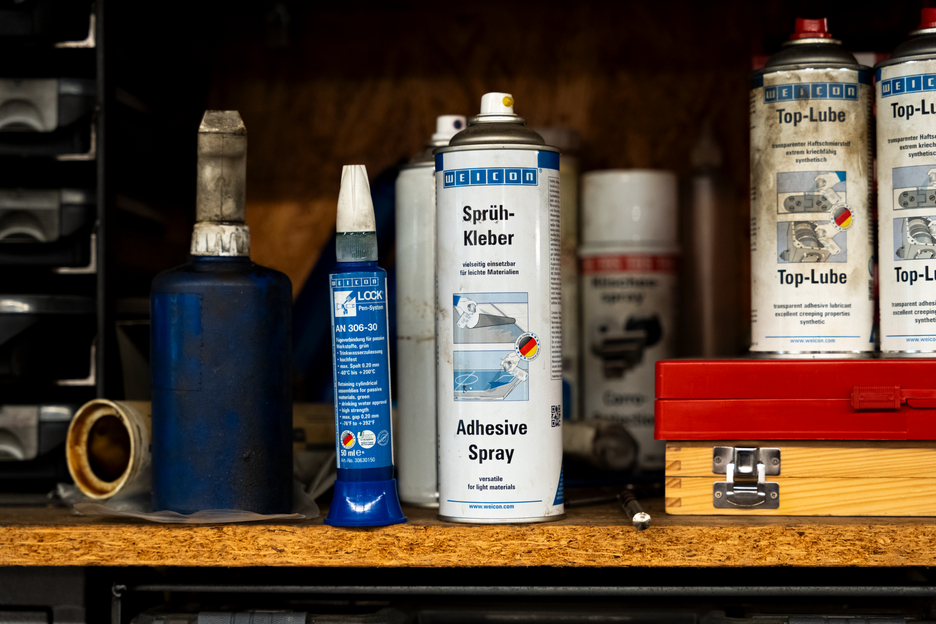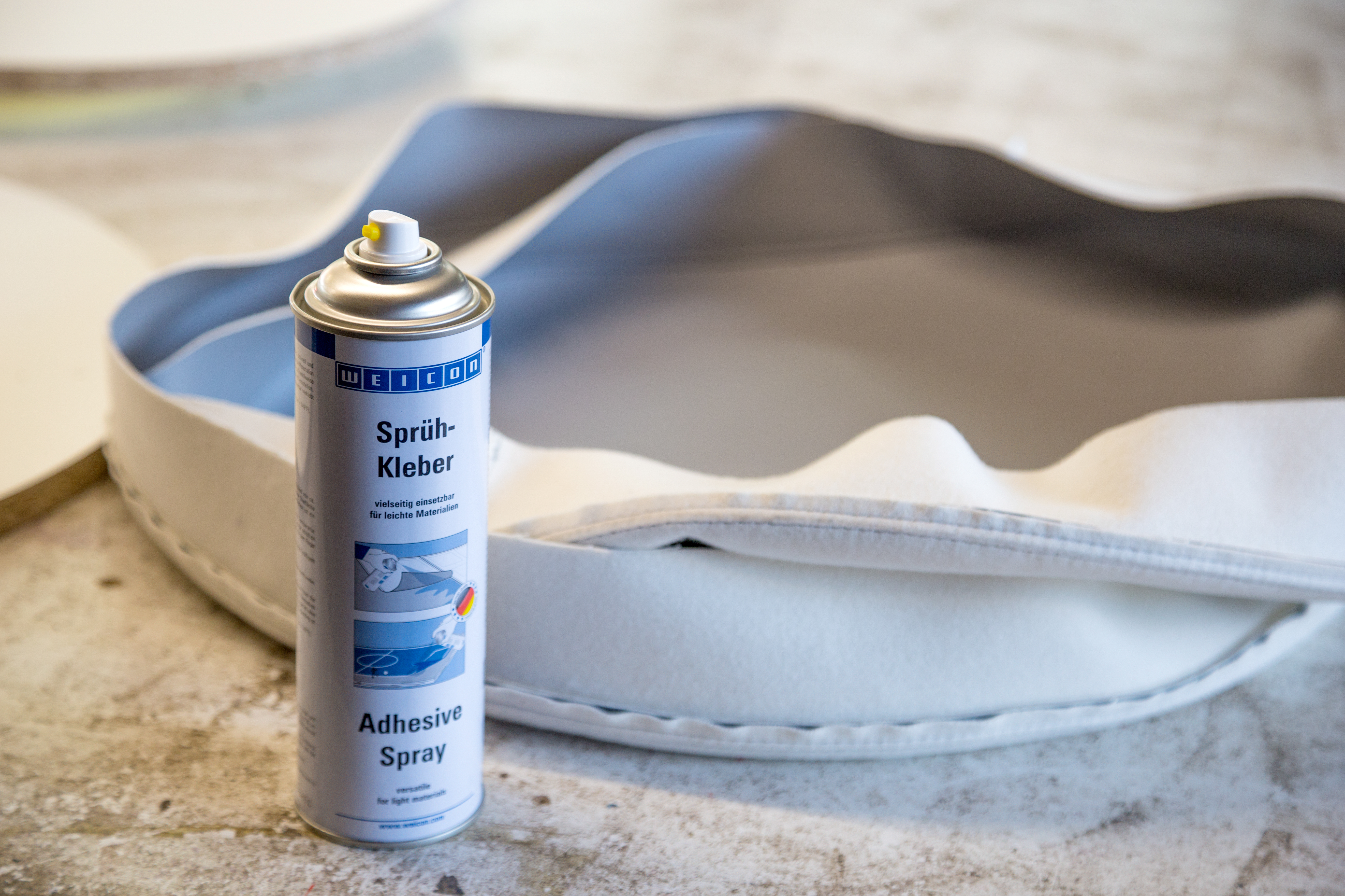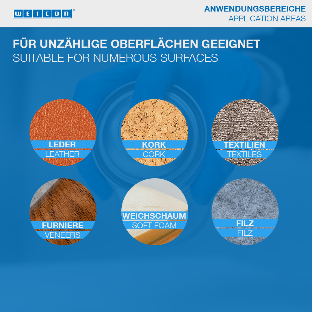 WEICON Adhesive Spray is suitable for all-purpose use and bonds light materials. WEICON Adhesive Spray is suitable for the bonding of numerous materials such as paper, cardboard, pasteboard, wood, thin veneers, cork, leather, textiles, felt, soft foam, rubber, foam rubber, and plastic film (except for PVC and polyethylene). It is especially suited for the bonding of hard foam.