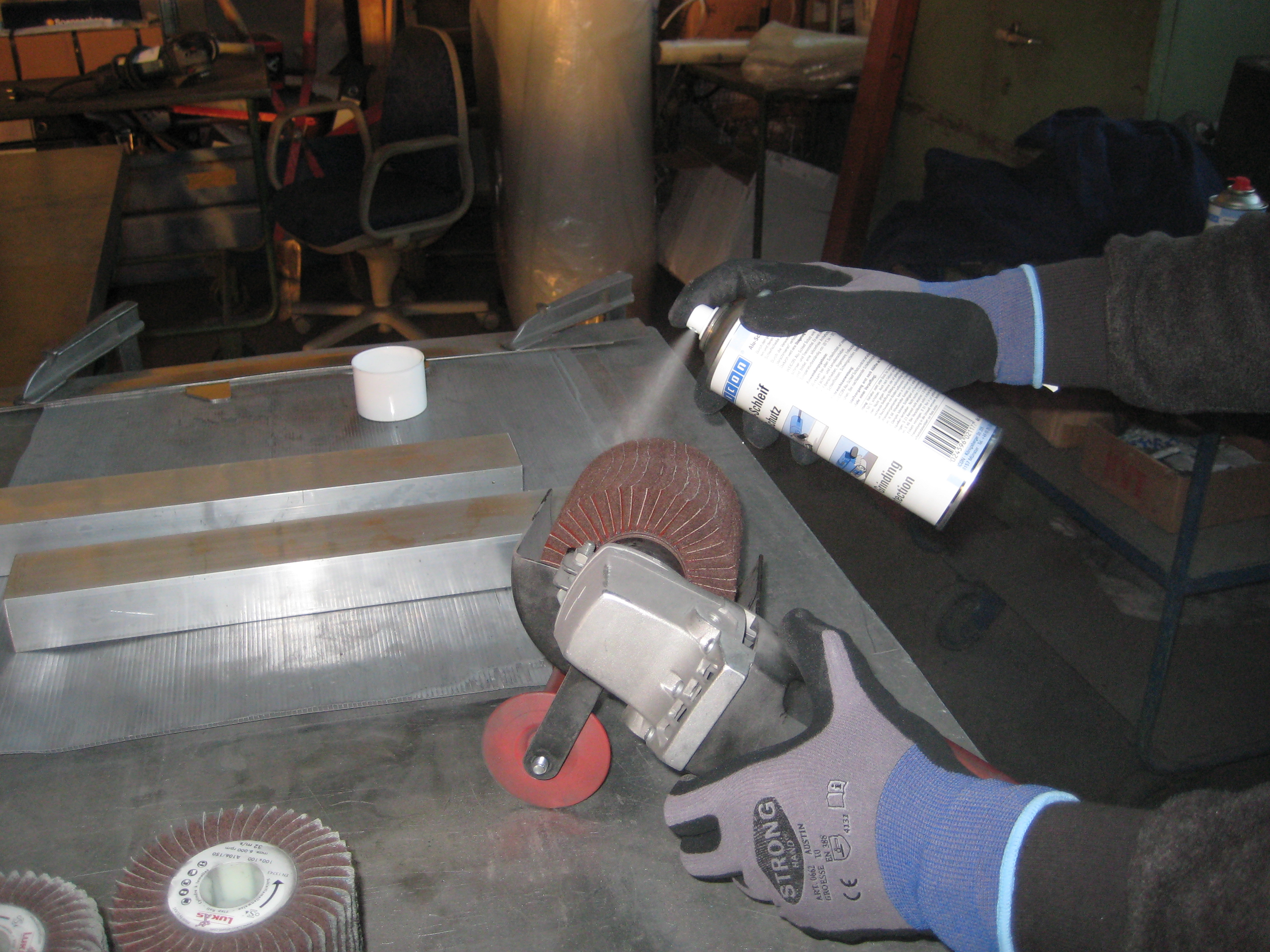 Ich habe Alu geschliffen und das Trennmittel auf die Lamellen-Schleifscheibe aufgetragen. Die Schleifscheibe hat sich nicht mit Schleifstaub zugesetzt. Super Spray!
