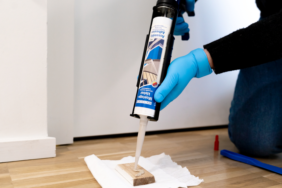 Fast and strong contact adhesive based on synthetic rubber for indoor and outdoor bonding. The elastic 1-component assembly adhesive can be used on many materials, such as wood and wood fibreboards, MDF and OSB boards, decorative boards, steel, aluminium, plastic, PVC, plaster, plasterboard, ceramics, masonry, tiles, stone and concrete. The adhesive is suitable for the quick and permanent fixing of skirting boards, panels, flooring elements, wall coverings, window bottoms, door thresholds, wooden door frames, decorative profiles and many other applications.