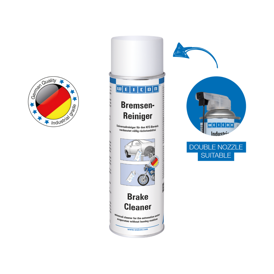 WEICON Brake Cleaner is a universal cleaner for the automotive industry, which cleans, degreases and evaporates without leaving residues. WEICON Brake Cleaner quickly and effortlessly degreases and cleans metals, glass and many plastics. It removes oily and greasy impurities and residues. WEICON Brake Cleaner can be used on brakes (drum and disc brakes, brake pads, brake blocks, cylinders, springs and bushings), clutches (clutch linings and components) and on engine parts (carburettors, fuel and oil pumps, gears etc.).