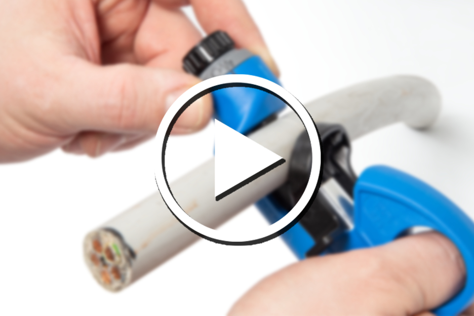 The Cable Stripper No. 4-29 is very robust, precise and suitable for soft as well as rigid insulations of cables with a diameter of 4.5 - 29 mm. The different cutting directions for round, spiral and longitudinal cutting can be safely set via the respective position of the adjustment lever. Thanks to the spiral cut, even complex insulations can be removed easier. The cutting depth can be adjusted easily and precisely. It can be set with a lockable control knob in 0.1 millimetre steps from 0 to 3 millimetres. That way, the layers below are not damaged. The handy and ergonomic tool features a locking system. This function prevents the tool from opening in the longitudinal cut setting. Therefore, breaking of the hardened steel blade due to incorrect handling is prevented. The special sliding properties of the contact surface guarantee resistance-free working on the cable. A special grind of the replaceable blade ensures the clean removal of the outer sheath.
