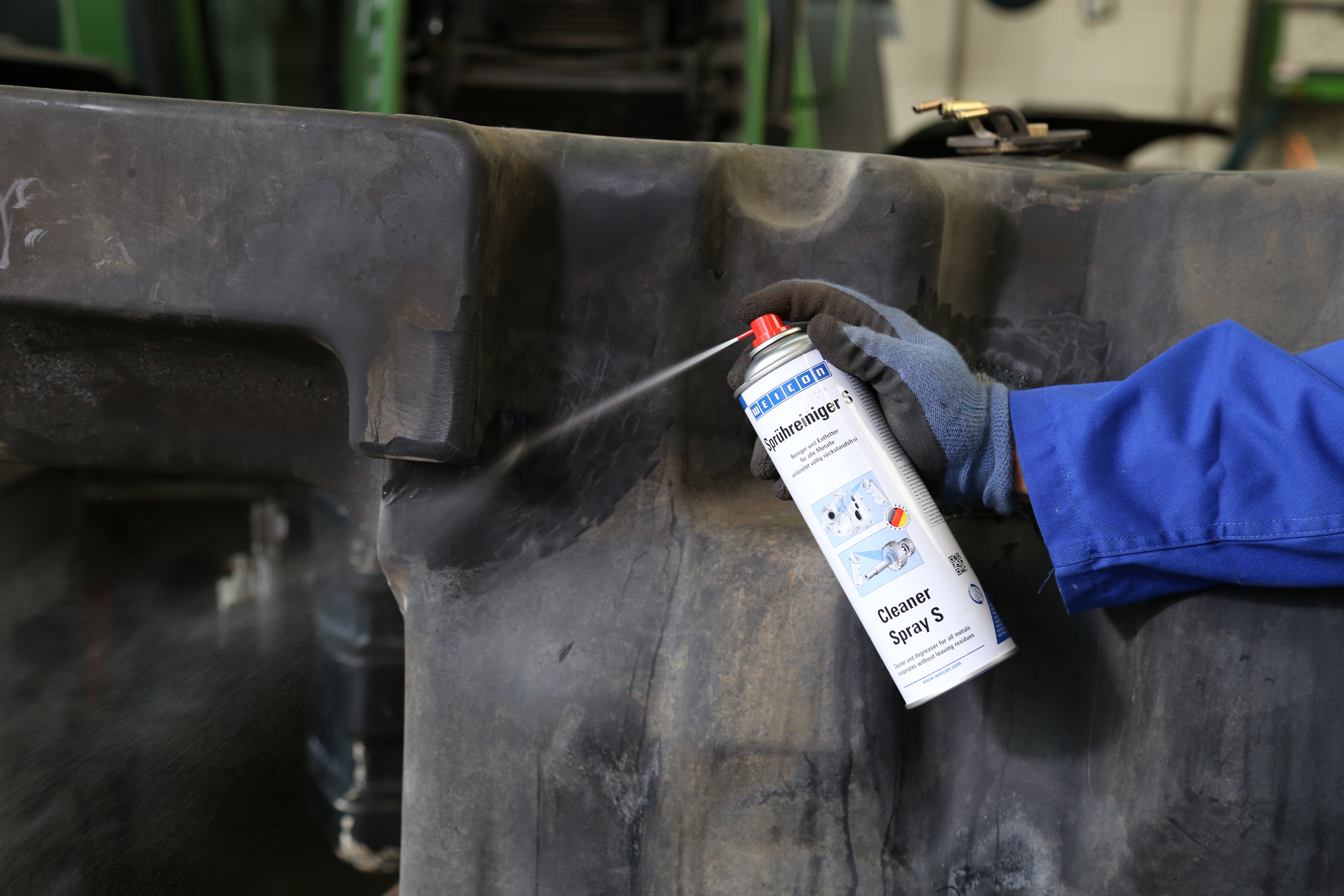 WEICON Cleaner Spray S removes oily and greasy soiling from all metals as well as from ceramics, glass and most plastics. It can, however, attack the surface of thermoplastics such as PVC, Plexiglas, polystyrene and single layers of paint. WEICON Cleaner S evaporates quickly and, in contrast to conventional thinners, without leaving residues. It can be used for cleaning and degreasing before priming and painting, for cleaning machine parts, or before other WEICON products are applied to surfaces where a greasy underground would impair their effect.