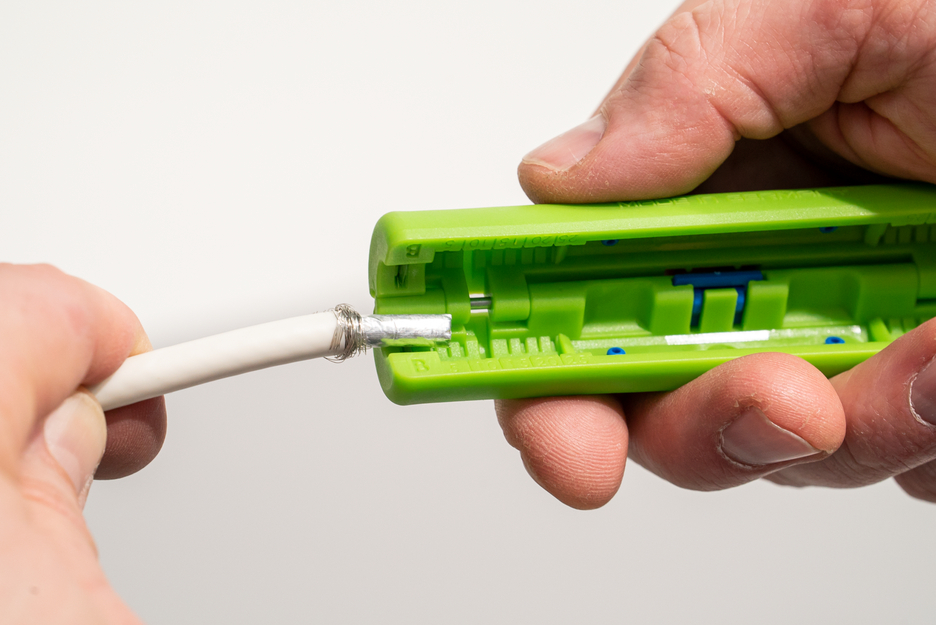 Sustainable stripping tool I for skinning and stripping coaxial cables I working range 4,8 - 7,5 mm Ø