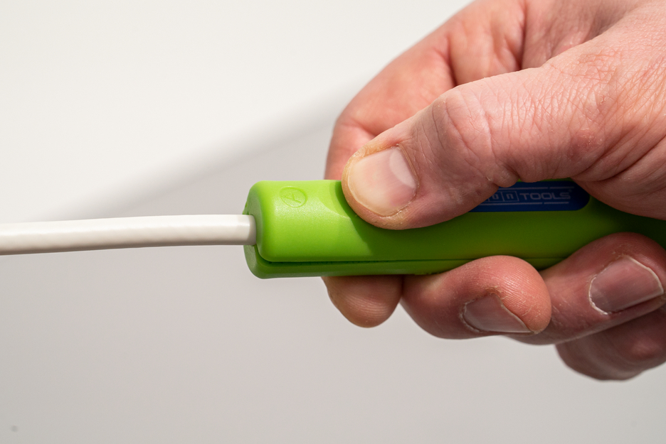 With the Green Line, a very special tool range has been developed. The tools are made of up to 97 % renewable raw materials, which are recyclable and have an excellent life cycle assessment. Handy and simple stripper with a precise cutting pattern for gradual stripping. The first sheath of the coaxial cable, for example, can be removed with the knife of the cable stripper on side A. With side B, the inner conductor is then stripped. The housing components are made of high-grade, wear-resistant polyamide. This tool can be used in skilled trades and various industries.