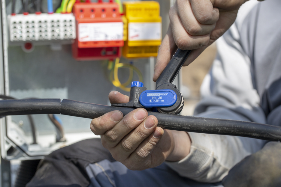 cable knife for longitudinal and circular cuts on round cables from 25 mm Ø I Easy working even at low temperatures