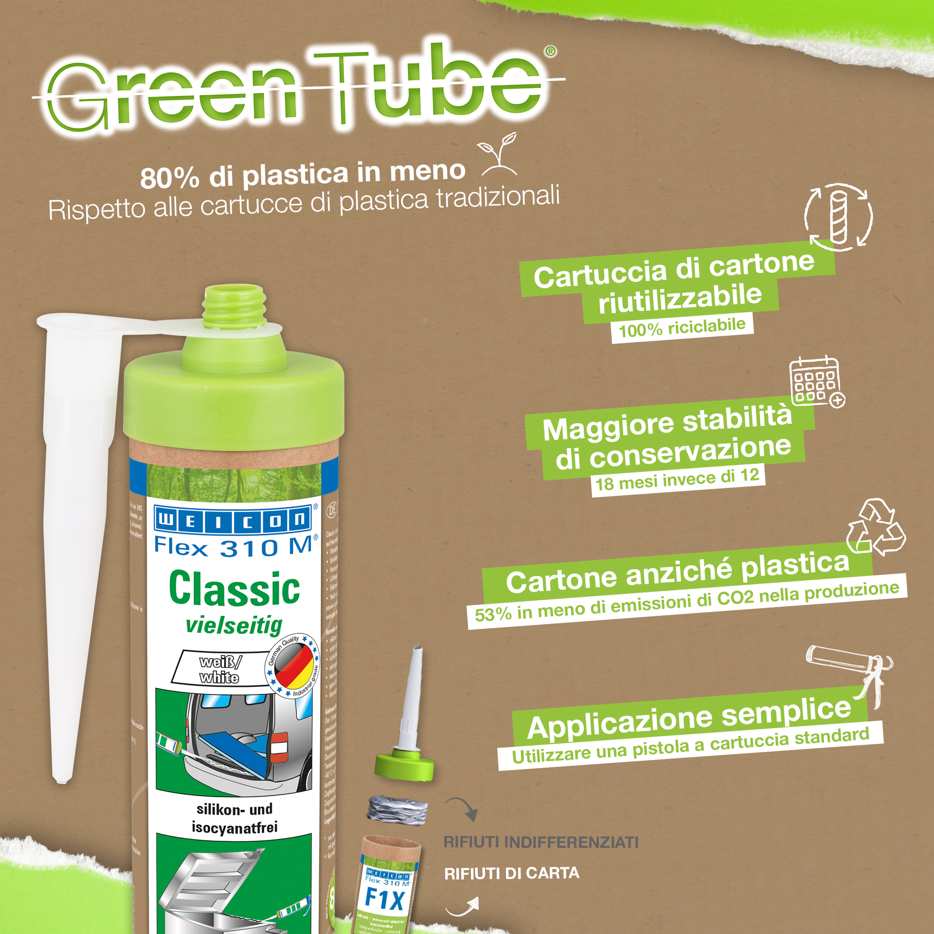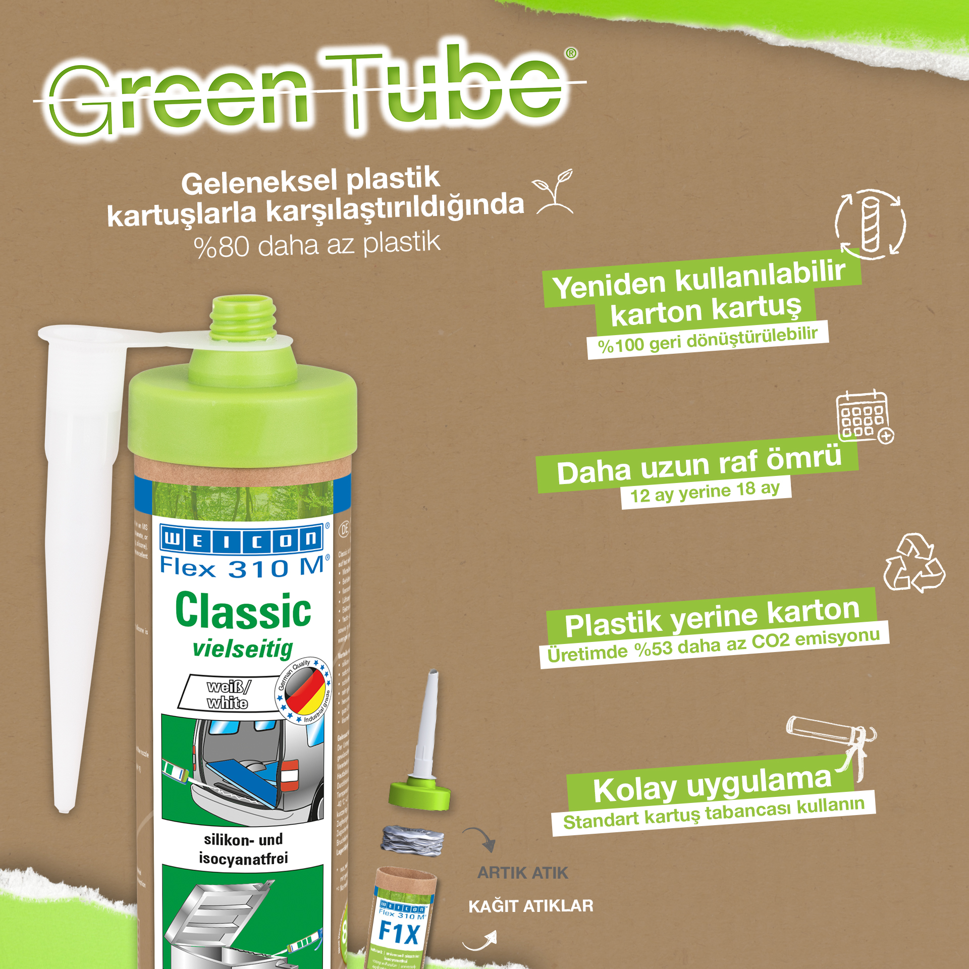 WEICON Flex 310 M Classic is strong, paintable (wet-on-wet), sandable, has an outstanding resistance to ageing and good resistance to UV rays. It is resistant to fresh and salt water and is free of silicone, isocyanate, halogens and solvents. The product as an ISEGA certificate and can be used as an adhesive in the food technology. Flex 310 M Classic is an elastic adhesive based on MS polymer and is suitable for the bonding of metals, many plastics, ceramics, wood, glass and stone. This adhesive and sealant can be used in metal construction, tank and apparatus engineering, carriage, vehicle and container construction, ventilation and air conditioning systems, in the electrical industry, yacht and boat construction, and in all applications where silicones or products containing silicones are not suitable.