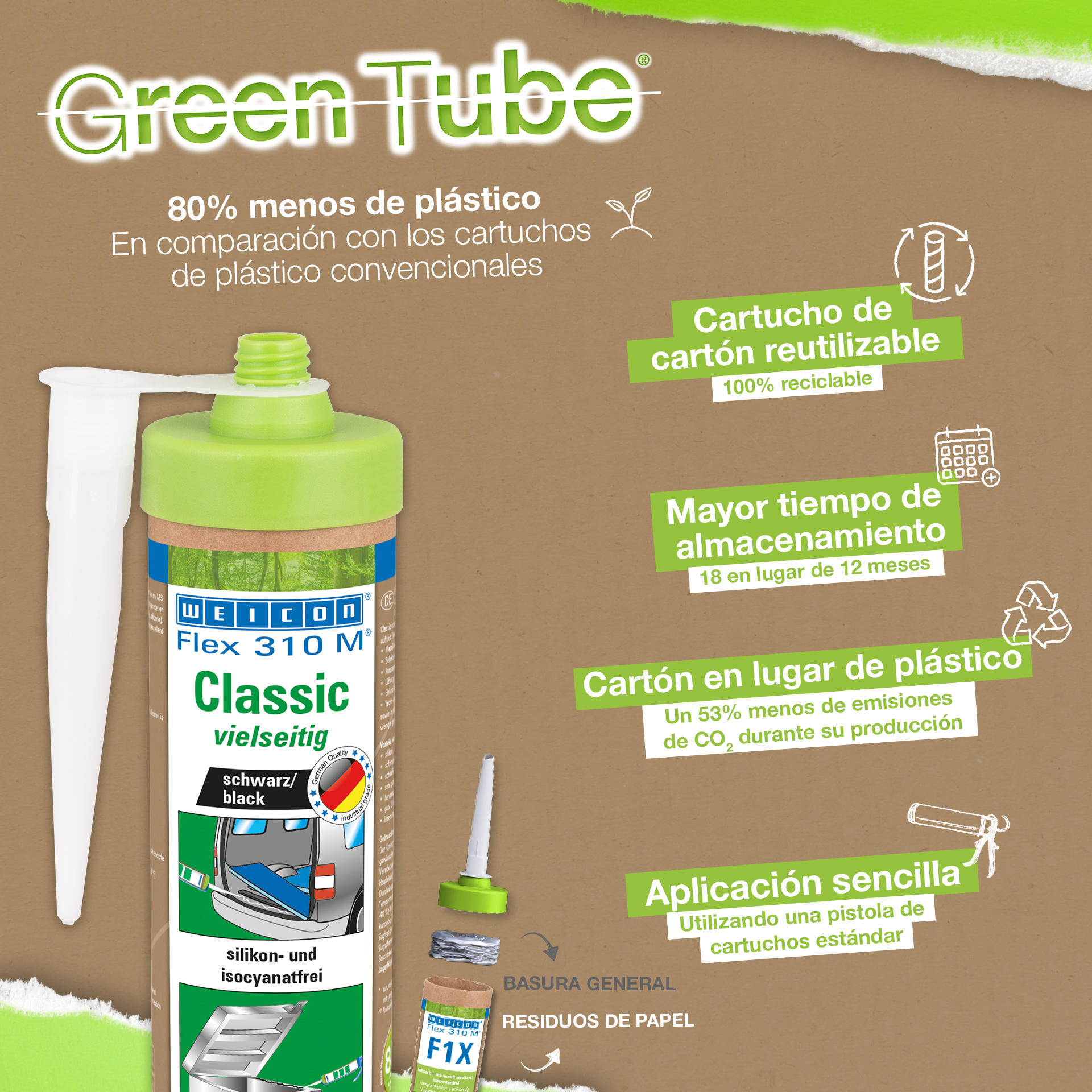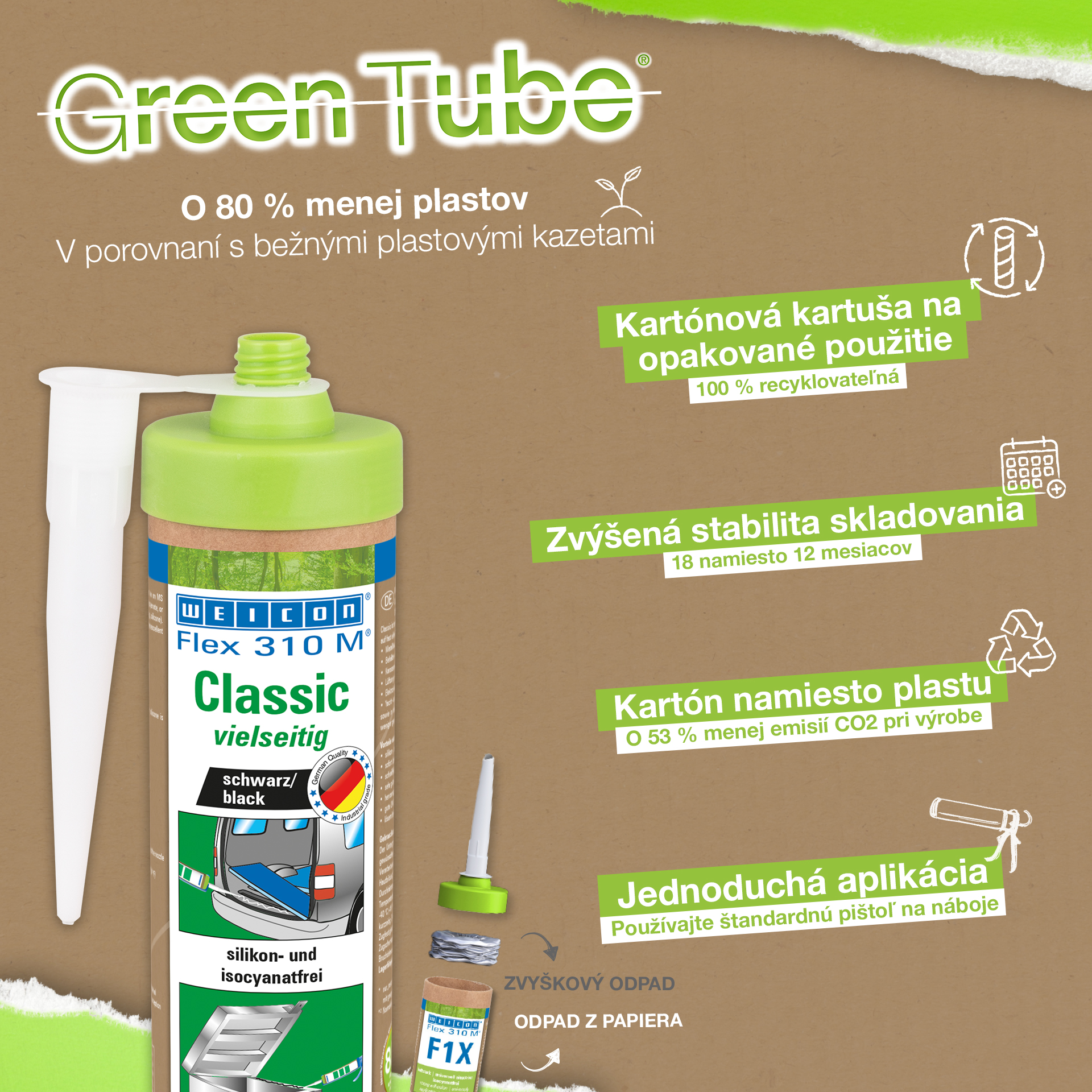 WEICON Flex 310 M Classic is strong, paintable (wet-on-wet), sandable, has an outstanding resistance to ageing and good resistance to UV rays. It is resistant to fresh and salt water and is free of silicone, isocyanate, halogens and solvents. The product as an ISEGA certificate and can be used as an adhesive in the food technology. Flex 310 M Classic is an elastic adhesive based on MS polymer and is suitable for the bonding of metals, many plastics, ceramics, wood, glass and stone. This adhesive and sealant can be used in metal construction, tank and apparatus engineering, carriage, vehicle and container construction, ventilation and air conditioning systems, in the electrical industry, yacht and boat construction, and in all applications where silicones or products containing silicones are not suitable.