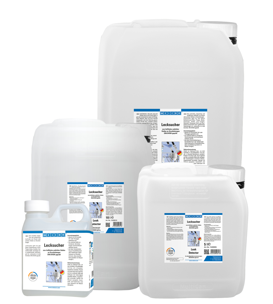 WEICON Leak Detector is used for the fast, convenient and reliable location of leaks (cracks or porous spots) in pressurized pipes. Leak Detection does not form any hazardous compounds with carbon dioxide (CO2), propane, butane, acetylene, oxygen, town gas or natural gases. It can be used wherever compressed air, natural or liquid gas is processed, and wherever leaky points can occur on fittings, threated joints, and connections. It greatly contributes to the safety of pneumatic brakes and gas lines.