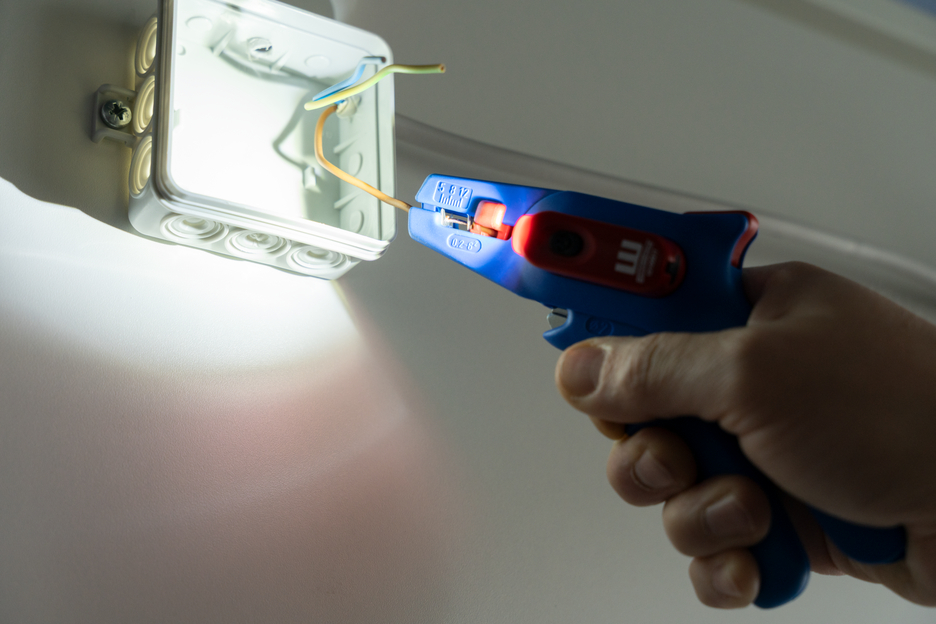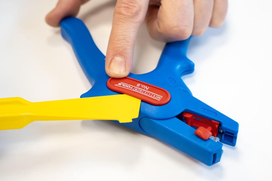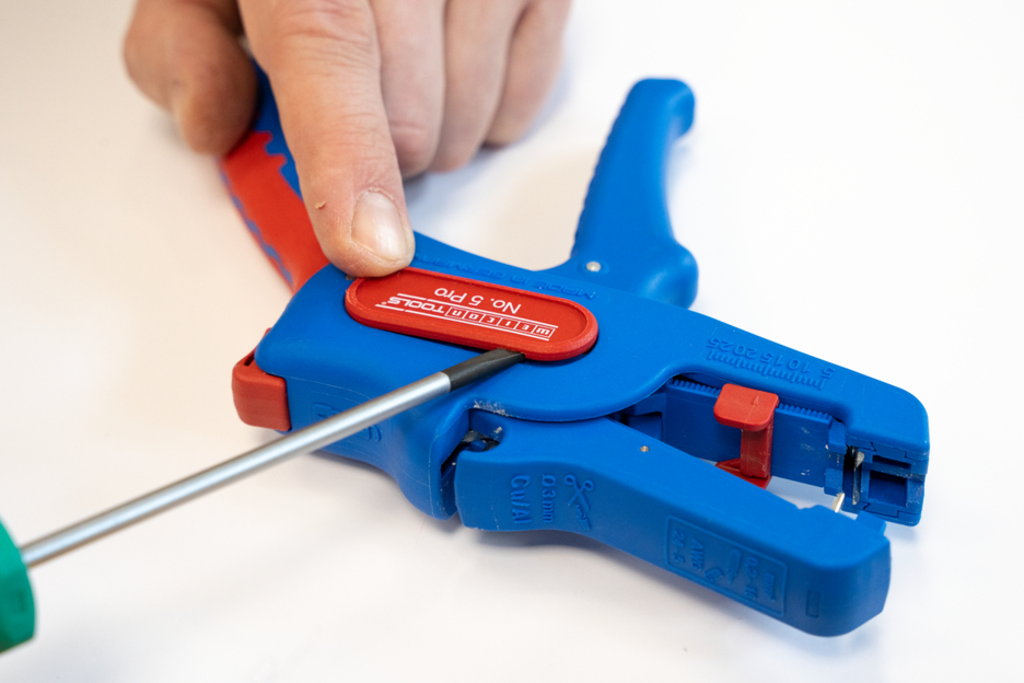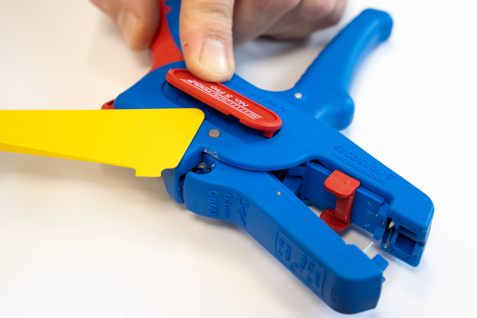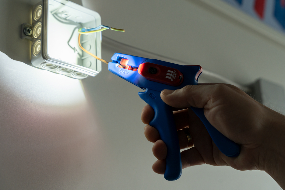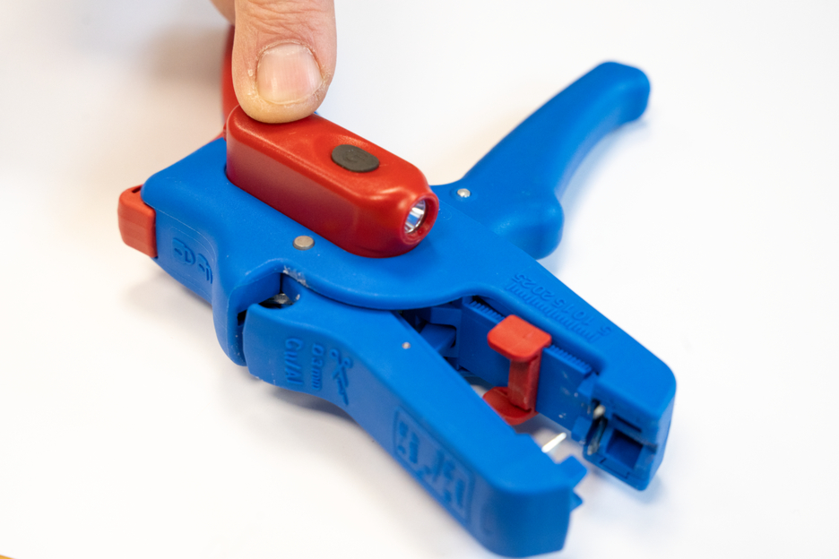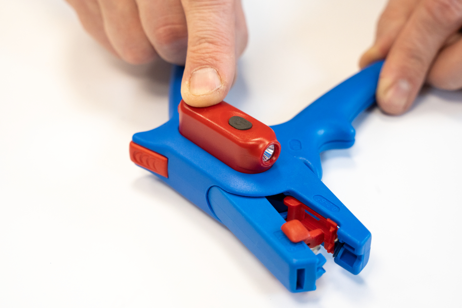 Electricians should always work with the power turned off when handling electrical installations, wires or devices. During work, e.g. in a construction site, there is often insufficient lighting or illumination. This new work light offers a perfect solution. The work light is very easy to attach to the stripping tool. To attach it, simply remove the printed plastic plate on one side of the stripper and press the light with its two mounting points into the designated holes. This ensures that the work light always remains in the correct position and cannot fall or slip. The lamp is switched on by pressing the switch. Press several times to select the brightness level (three levels with 50, 127 or 250 lumens). To switch off the lamp, press and hold the on/off switch. The LED Work Light has a length of 48 mm and a weight of 15 g. The LED light has IP65 certification and is both dustproof and splash-resistant. The Work Light has a 180 mAh lithium battery and can be used for approx. 2 hours on a medium setting after a charging time of 40 minutes. The service life of the battery charge varies depending on the selected light intensity. The WEICON TOOLS LED Work Light is available in the colours red and black.