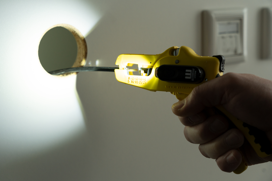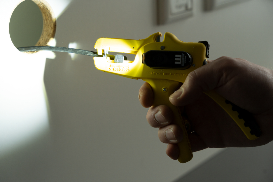 Electricians should always work with the power turned off when handling electrical installations, wires or devices. During work, e.g. in a construction site, there is often insufficient lighting or illumination. This new work light offers a perfect solution. The work light is very easy to attach to the stripping tool. To attach it, simply remove the printed plastic plate on one side of the stripper and press the light with its two mounting points into the designated holes. This ensures that the work light always remains in the correct position and cannot fall or slip. The lamp is switched on by pressing the switch. Press several times to select the brightness level (three levels with 50, 127 or 250 lumens). To switch off the lamp, press and hold the on/off switch. The LED Work Light has a length of 48 mm and a weight of 15 g. The LED light has IP65 certification and is both dustproof and splash-resistant. The Work Light has a 180 mAh lithium battery and can be used for approx. 2 hours on a medium setting after a charging time of 40 minutes. The service life of the battery charge varies depending on the selected light intensity. The WEICON TOOLS LED Work Light is available in the colours red and black.