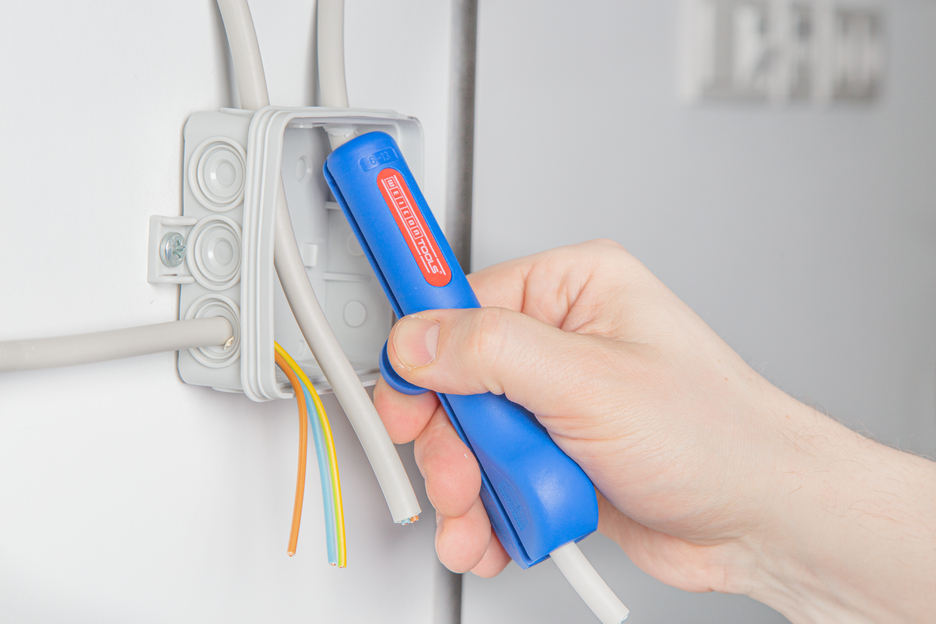 The Round Cable Stripper No. 13 enables fast and convenientstripping of all common round and wet room cables with adiameter of 6.0 - 13.0 mm (e.g. NYM cables 3 x 1.5 mm² to 5 x 2.5mm²). Adjusting the cutting depth manually is not necessary. Thenew working range is thus also suitable for smaller wire diametersfrom 6 mm, such as 3 x 0.75 mm². Thanks to the ergonomichandle shape, the tool is particularly comfortable to use.The distinctive handle of the Round Cable Stripper No. 13 ensures a safe, non-slip grip. This helps to make daily work easierand also improves work safety. The rounded and space-savingtool head perfectly matches the modern wall box geometry. The longer shape makes access even easier when stripping in deep-set cavity wall boxes and spaces difficult to reach. Due to the newblade arrangement, clogging of the electro-galvanised knivescaused by residue of cable sheaths is prevented.For possible small series or for producing wires with the samestrip length, a length stop is integrated in the housing. A fasteningclip ensures safe storage of the tool.