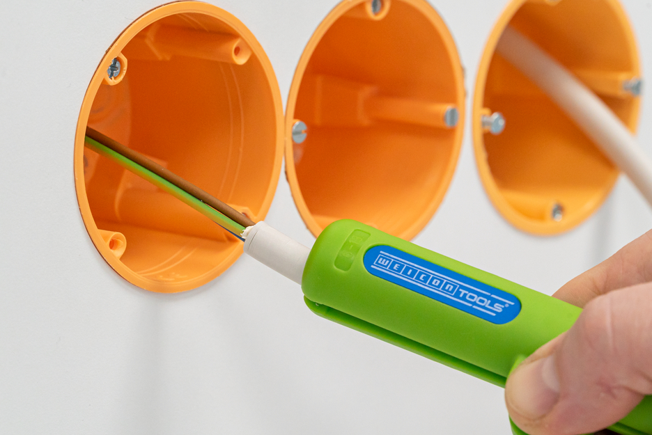 Sustainable stripping tool I Non-slip and safe working thanks to ergonomic handle shape I for stripping all common round cables I working range 6,0 - 13,0 mm Ø I Adjusting the cutting depth not required