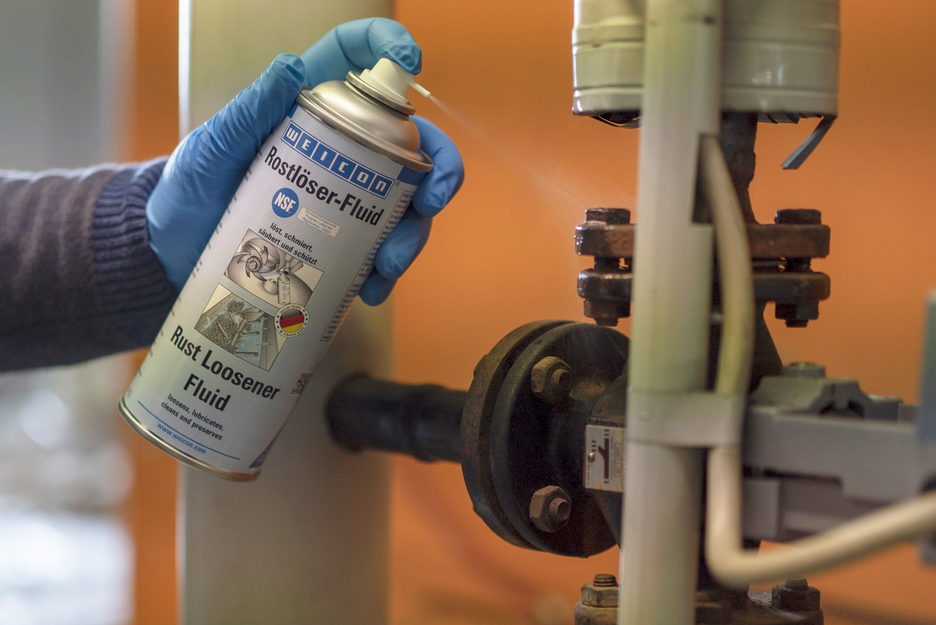 WEICON Rust Loosener Fluid is physiologically harmless and has an NSF registration for the food industry. Therefore, it can be used in the food and beverage industry and in the pharmaceuticals and cosmetics industries. Rust Loosener Fluid loosens rusted and oxidised screw connections, bolts, levers, joints and hinges as well as seized mechanisms on components. Due to its excellent capillary action, Rust Loosener Fluid can even reach extremely narrow spaces. It secures the function of mechanical parts and electrical contacts. The spray permanently protects against corrosion and oxidation. It cleans and maintains metal surfaces, mechanical parts and electrical systems. Due to its special formula and the resulting NSF registration, Rust Loosener Fluid can contribute towards the improvement of workplace safety and health protection.