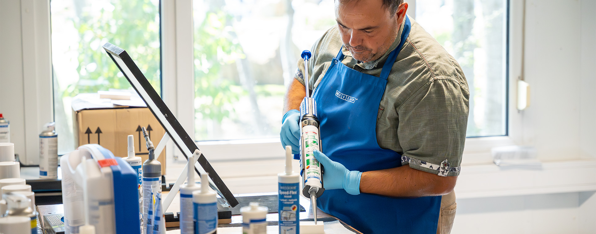 Our employees are trained at the Fraunhofer Institute for Manufacturing Technology and Advanced Materials IFAM in Bremen as specialists in adhesive bonding technology in order to offer you the best possible bonding advice. In addition, we train our team in internal product training sessions and training courses on various topics.