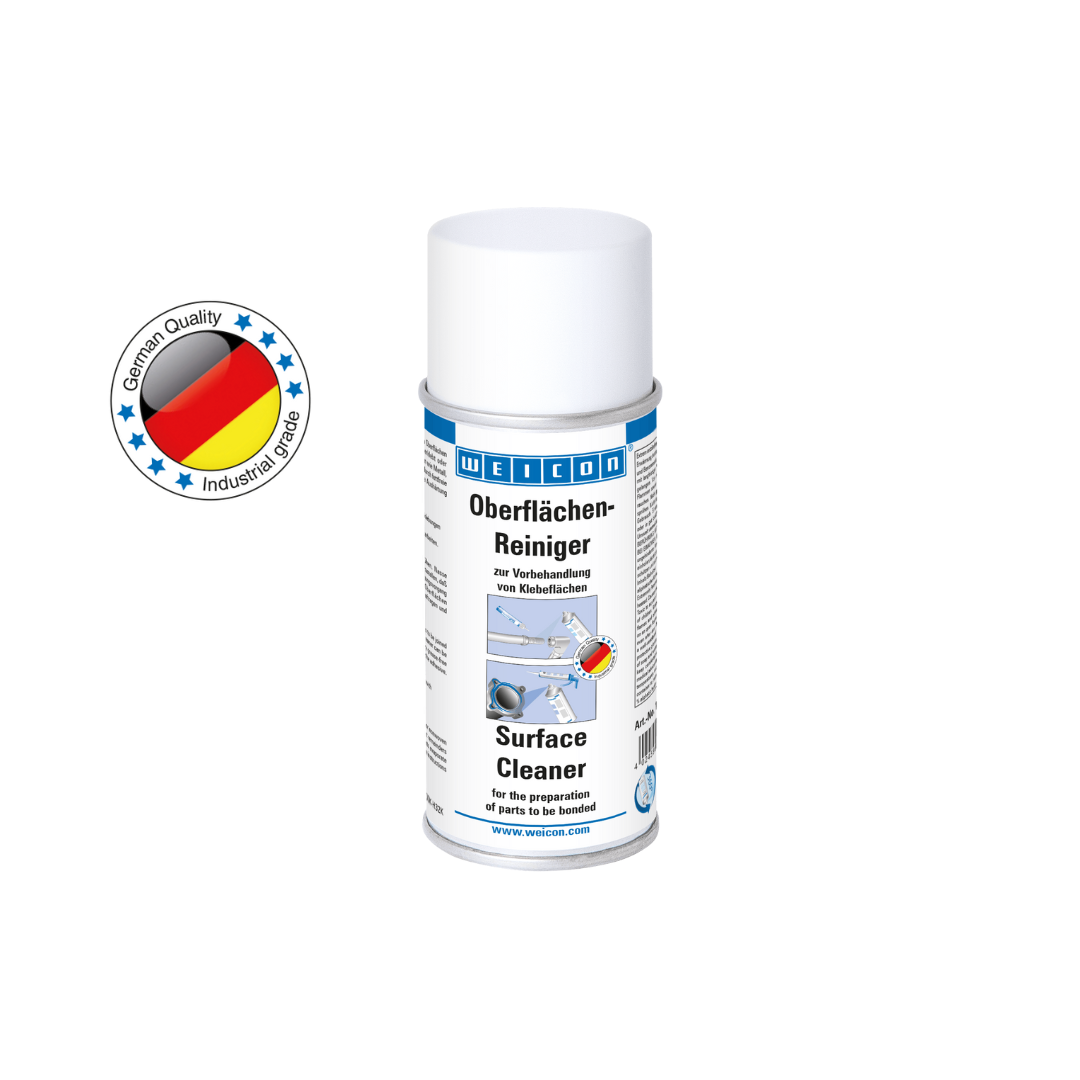 WEICON Surface Cleaner is used for the cleaning and degreasing of surfaces to be joined or sealed with WEICON Adhesives and Sealants. Surface Cleaner can be used on materials like metal, glass, ceramics and most plastics, and evaporates without residues. Check surface compatibility prior to use. WEICON Surface Cleaner can also be used to clean and degrease machine components in the course of maintenance works.