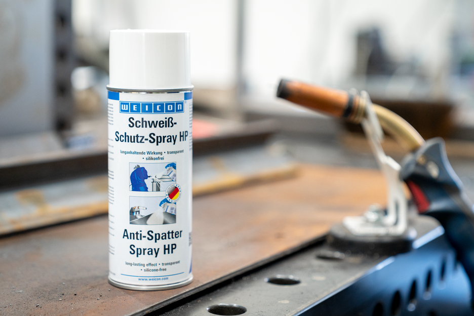 WEICON Anti-Spatter Spray HP is a high-quality release agent and lubricant and is used for cleaning welding tips, welding nozzles and gas nozzles. It also protects workpieces and surfaces to be welded from the adhesion and penetration of weld spatter without impairing the weld seam. The silicone-free Anti-Spatter Spray HP provides long-term protection for the treated surfaces. Using the spray minimises downtimes and interruptions in the production process for cleaning the welding equipment. The use of the spray eliminates the need to clean the workpieces with a spatula, brush or chisel. Post-treatment of the workpieces (such as bronzing, galvanising, anodising or painting) is possible without special cleaning. Cleaning, e.g. with WEICON Cleaner Spray S, may be necessary in the case of excessive spraying.