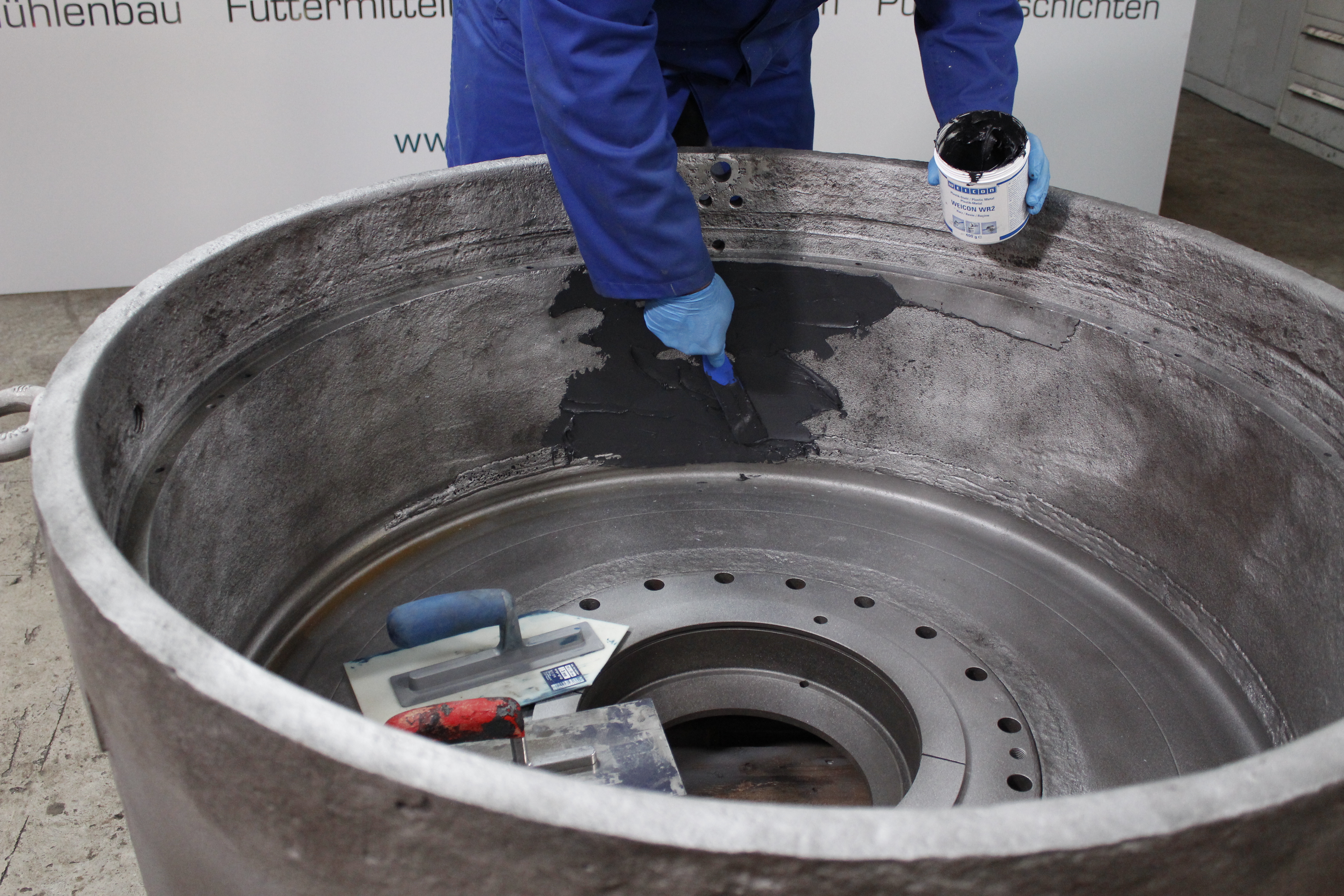 WEICON WR2 is a pasty wear protection and is particularly suitable for areas where the processing of casting compounds is not possible such as the repair of conveyors, guide rails and sliding ways. The epoxy resin system is also used to prevent wear on metal surfaces that are subject to high abrasion and erosion. It can serve as a wear-resistant underlayer before the final coating with WEICON Ceramic BL WR2 can be used in mechanical and plant engineering, in equipment engineering, and in many other areas of industry.