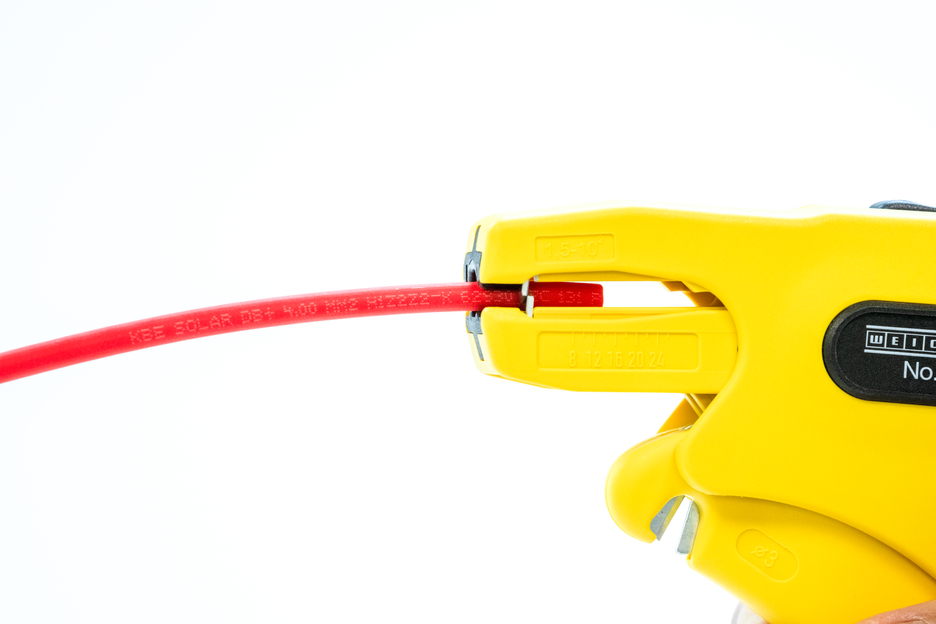 The WEICON Wire Stripper No. 7 Solar offers a fine-tuning mechanism, which can be adjusted to various positions. That way, all common round cables used in the solar sector from 1.5-10.0 mm² can be stripped. The wire stripper also has visual length scale from 8 - 24mm. The knives of the Wire Stripper No. 7 Solar are hardened additionally in order to easily remove multilayer rubber insulations. A well-accessible side cutter is integrated in the tool, which is suitable for cable diameters up to 3 mm and has replaceable blades.